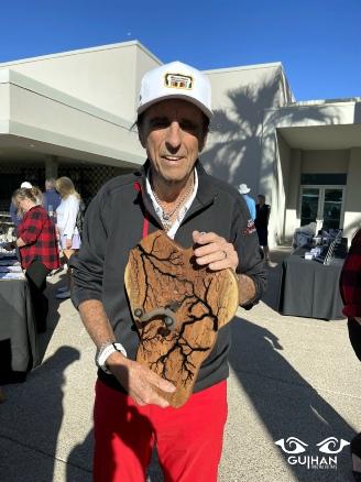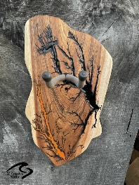 ►DESIGN: This is an inspired guitar hanger custom hand-crafted features a fractal art design. This creative art is a tribute to a person who has been a profound influence on my musical life since childhood. It stands as a symbol of my gratitude for his immense talent and lasting impact on the world of music. ►DISCLAIMER: GC Creative Works/Guihan Guitars is not affiliated with, or endorsed, sponsored, or supported by any professional musician artists. The name and picture are merely for descriptive purposes only. The guitar in the picture is not included. It is solely used for descriptive visual purposes only. ►WOOD: Arizona grown desert hardwood is uniquely hand-crafted and custom designed from weathered-down trees found in metropolitan Phoenix areas. By recovering the logs, allows me to create a 100% sustainable guitar hanger. Note* Since the fractal art is uniquely done to each wood, the picture shown above is not the exact fractal design you'll receive. The shape and size will be the same. ►FRACTAL ART: A process of applying 20,000 volts of electricity to the wood surface recreating a lightning strike in slow motion as well as unique abstract figures, tree and vein like shapes. It is sealed with epoxy inlay ink self-leveling high gloss U.V. resistant formula. ►EPOXY: Self-leveling high gloss U.V. A resistant formula epoxy with color pigment is added to seal the burns created during fractal art process on the surface of the wood. The colors available are: (Angel White, Aqua Marine, Arizona Gold, Army Green, Black, Blue Metallic, Cardinal Metallic, Caribbean Blue, Desert Copper, Emerald Metallic, Golden Yellow, Gray Metallic, Hot Pink, Hunter Green, Orange Crush, Pearl White, Purple Metallic, Red Metallic, Silver Grey, Teal Metallic, Turquoise Blue. Other colors available upon request.) ►OIL FINISH: Hand rubbed Old Masters clear satin gel polyurethane and food grade oils to bring out the natural beauty of wooden surfaces. ►STRING SWING HARDWARE: The new design, known as the “Guitar Keeper”, has a deep cradle design that prevents the guitar from being improperly placed into the hanger. This ultimately provides a safer hanger for your instrument, as the guitar needs to be lifted 2 inches and brought forward to be removed. The pivoting yoke allows for Electric, Acoustic or Bass guitar headstocks to be cradled perfectly while still hanging straight. Made in the USA. ►DESIGN ENGINEERING: Garie Chavez has researched and tested the use of proper hardware for mounting the String Swing guitar hanger to live edge wood materials. A threaded insert made of carbon steel zinc plated finish goes into a pre pre-drilled hole and has internal threads. It offers a strong permanent thread to live edge hardwood and mount the guitar hanger yoke. Mounting hardware included with two drywall anchors and two 2-inch Phillips wood screws. ►MOUNTING INSTRUCTIONS: To mount on existing stud walls, drive the screws through pre-drilled pilot holes of the hanger into the wall using a Phillips screwdriver. If a wall stud is not found, mark the pilot holes on the guitar hanger using a Phillips screwdriver to push and turn the aluminum wall anchor clockwise until flush. Mount the guitar hanger with screws provided through the pilot holes and secure into drywall anchors. GC Creative Works is not responsible for any damages to the musical instrument for any improper installation of the guitar hanger to the wall.It is the sole responsibility of the owner/buyer to properly install the guitar hanger to the wall. ►DONATION: GC Creative Works donate part of the sales of guitar hanger fractal art to Sweet Relief Musicians Fund. A 501-C3 non profit charity that provides services and financial assistance for all types of career musicians and music industry professionals. Thank you for your support. ►PAYMENT TERMS: PAYPAL secure shopping cart is used on this website for online purchases. ►DIMENSIONS: Height: 15-16 inches Width: 8-10 inches Thickness: 1-1-1/4 inch ►SHIPPING TERMS: Free to continental US states including Alaska, Hawaii and Puerto Rico. Standard Shipping takes 3 to 7 business days from the date of order received. Additional freight charges for International shipments. ►COMPLETION TIME: Please allow 3-7 days to complete from the time order is received.