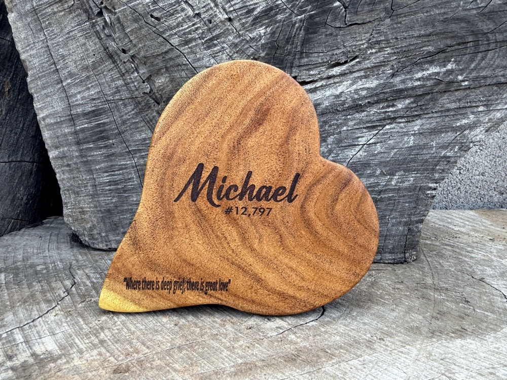 ►FRACTAL ART: A process of applying 20,000 volts of electricity on the surface of the wood with conductive solution and recreating a lightning strike in slow motion as well as unique abstract figures, tree and vein like shapes. The fractal art on the heart represents the beautiful life and memories of Michael that he shared with family and friends. He was also a big Chicago Bears fan.