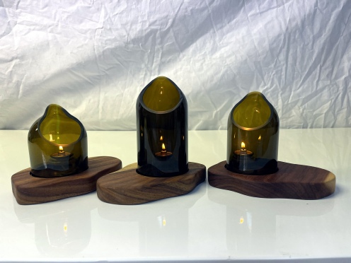 Live Edge Centerpiece Fractal ArtBordeaux Amber Candle Holder