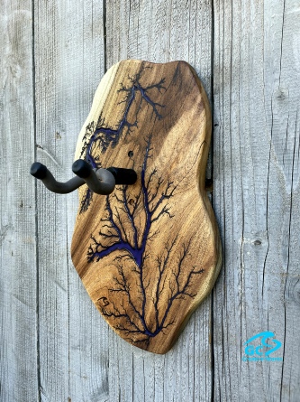 ►DESIGN: This is an inspired guitar hanger custom hand-crafted features a fractal art design. This creative art is a tribute to a person who has been a profound influence on my musical life since childhood. It stands as a symbol of my gratitude for his immense talent and lasting impact on the world of music. ►DISCLAIMER: GC Creative Works/Guihan Guitars is not affiliated with, or endorsed, sponsored, or supported by any professional musician artists. The name and picture are merely for descriptive purposes only. The guitar in the picture is not included. It is solely used for descriptive visual purposes only. ►WOOD: Arizona grown desert hardwood is uniquely hand-crafted and custom designed from weathered-down trees found in metropolitan Phoenix areas. By recovering the logs, allows me to create a 100% sustainable guitar hanger. Note* Since the fractal art is uniquely done to each wood, the picture shown above is not the exact fractal design you'll receive. The shape and size will be the same. ►FRACTAL ART: A process of applying 20,000 volts of electricity to the wood surface recreating a lightning strike in slow motion as well as unique abstract figures, tree and vein like shapes. It is sealed with epoxy inlay ink self-leveling high gloss U.V. resistant formula. ►EPOXY: Self-leveling high gloss U.V. A resistant formula epoxy with color pigment is added to seal the burns created during fractal art process on the surface of the wood. The colors available are: (Angel White, Aqua Marine, Arizona Gold, Army Green, Black, Blue Metallic, Cardinal Metallic, Caribbean Blue, Desert Copper, Emerald Metallic, Golden Yellow, Gray Metallic, Hot Pink, Hunter Green, Orange Crush, Pearl White, Purple Metallic, Red Metallic, Silver Grey, Teal Metallic, Turquoise Blue. Other colors available upon request.) ►OIL FINISH: Hand rubbed Old Masters clear satin gel polyurethane and food grade oils to bring out the natural beauty of wooden surfaces. ►STRING SWING HARDWARE: The new design, known as the “Guitar Keeper”, has a deep cradle design that prevents the guitar from being improperly placed into the hanger. This ultimately provides a safer hanger for your instrument, as the guitar needs to be lifted 2 inches and brought forward to be removed. The pivoting yoke allows for Electric, Acoustic or Bass guitar headstocks to be cradled perfectly while still hanging straight. Made in the USA. ►DESIGN ENGINEERING: Garie Chavez has researched and tested the use of proper hardware for mounting the String Swing guitar hanger to live edge wood materials. A threaded insert made of carbon steel zinc plated finish goes into a pre pre-drilled hole and has internal threads. It offers a strong permanent thread to live edge hardwood and mount the guitar hanger yoke. Mounting hardware included with two drywall anchors and two 2-inch Phillips wood screws. ►MOUNTING INSTRUCTIONS: To mount on existing stud walls, drive the screws through pre-drilled pilot holes of the hanger into the wall using a Phillips screwdriver. If a wall stud is not found, mark the pilot holes on the guitar hanger using a Phillips screwdriver to push and turn the aluminum wall anchor clockwise until flush. Mount the guitar hanger with screws provided through the pilot holes and secure into drywall anchors. GC Creative Works is not responsible for any damages to the musical instrument for any improper installation of the guitar hanger to the wall.It is the sole responsibility of the owner/buyer to properly install the guitar hanger to the wall. ►DONATION: GC Creative Works donate part of the sales of guitar hanger fractal art to Sweet Relief Musicians Fund. A 501-C3 non profit charity that provides services and financial assistance for all types of career musicians and music industry professionals. Thank you for your support. ►PAYMENT TERMS: PAYPAL secure shopping cart is used on this website for online purchases. ►DIMENSIONS: Height: 15-16 inches Width: 8-10 inches Thickness: 1-1-1/4 inch ►SHIPPING TERMS: Free to continental US states including Alaska, Hawaii and Puerto Rico. Standard Shipping takes 3 to 7 business days from the date of order received. Additional freight charges for International shipments. ►COMPLETION TIME: Please allow 3-7 days to complete from the time order is received.