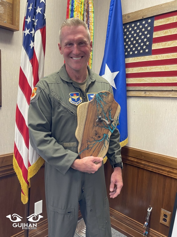 Brig. General Jason “Ox” Rueschhoff - USAF holding a Jimi Hendrix Inspired Guitar Hanger Fractal Art.